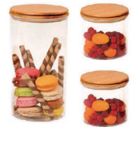 Набір акрилових контейнерів Harmony 3шт круглої форми з бамбуковою кришкою (0,8л + 0,8л + 1,6л)